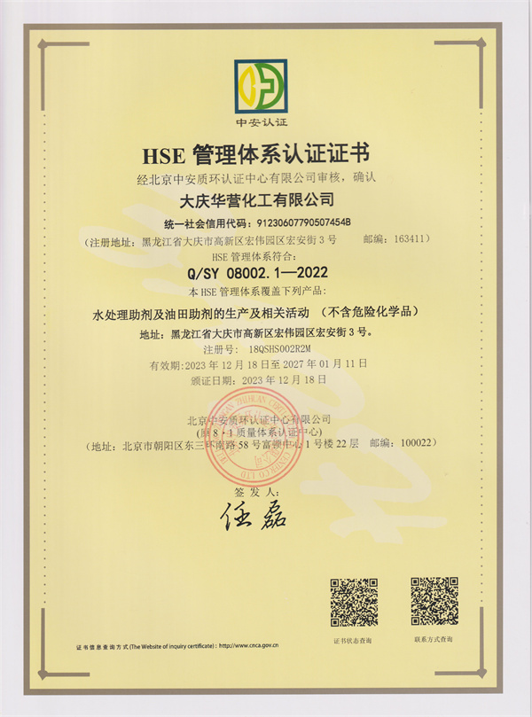 榮譽(yù)資質(zhì) HSE管理體系認(rèn)證證書