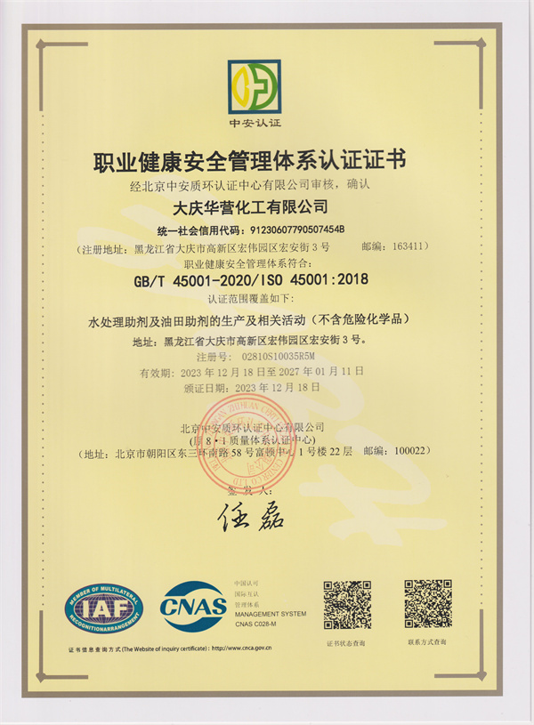 榮譽(yù)資質(zhì) 職業(yè)健康安全管理體系認(rèn)證證書